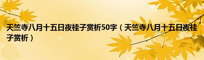 关于天竺寺八月十五日夜桂子赏析50字,天竺寺八月十五日夜桂子赏析这个很多人还不知道,今天菲菲来为大家解答以上的问题,现在让我们一起来看看吧!