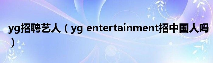 关于yg招聘艺人,yg entertainment招中国人吗这个很多人还不知道,今天菲菲来为大家解答以上的问题,现在让我们一起来看看吧!