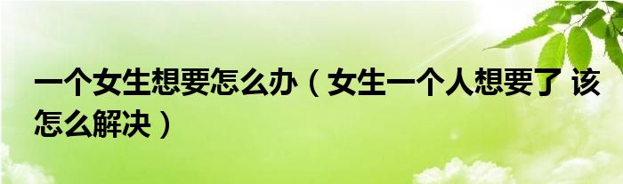 一个女生想要怎么办,女生一个人想要了 该怎么解决这个很多人还不知道,小飞来为大家解答以上的问题。现在让我们一起来看看吧!
