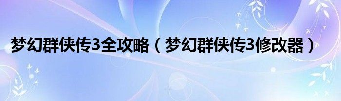 梦幻群侠传3全攻略,梦幻群侠传3修改器这个很多人还不知道,小飞来为大家解答以上的问题。现在让我们一起来看看吧!