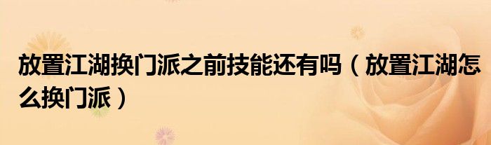 大家好,小晋来为大家解答以下问题,关于放置江湖换门派之前技能还有吗,放置江湖怎么换门派很多人还不知道,今天让我们一起来看看吧!