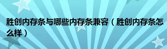 胜创内存条与哪些内存条兼容,胜创内存条怎么样很多人还不知道,乐乐来为大家解答以上问题,现在让我们一起来看看吧!