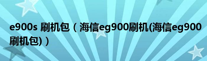 大家好,小常来为大家解答以上问题。e900s 刷机包,海信eg900刷机(海信eg900刷机包)很多人还不知道,现在让我们一起来看看吧!