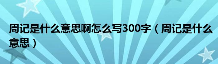关于周记是什么意思啊怎么写300字,周记是什么意思这个很多人还不知道,今天菲菲来为大家解答以上的问题,现在让我们一起来看看吧!