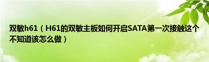 1,H61的双敏主板如何开启SATA第一次接触这个不知道该怎么做:SATA是个接口而已,老的IDE接口都淘汰了你想买IDE的硬盘都难,所以你的H61肯定用的SATA硬盘~
