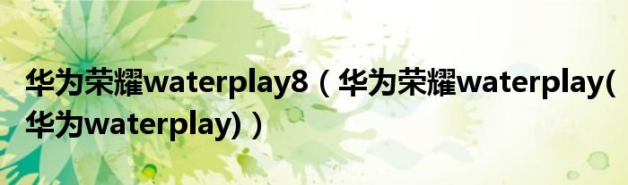 大家好,小常来为大家解答以上问题。华为荣耀waterplay8,华为荣耀waterplay(华为waterplay)很多人还不知道,现在让我们一起来看看吧!