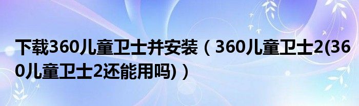 大家好,小常来为大家解答以上问题。下载360儿童卫士并安装,360儿童卫士2(360儿童卫士2还能用吗)很多人还不知道,现在让我们一起来看看吧!