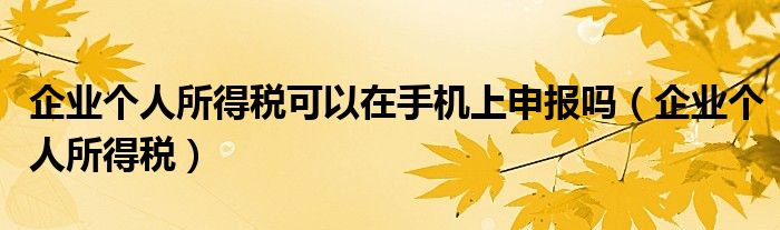 关于企业个人所得税可以在手机上申报吗,企业个人所得税这个很多人还不知道,今天菲菲来为大家解答以上的问题,现在让我们一起来看看吧!