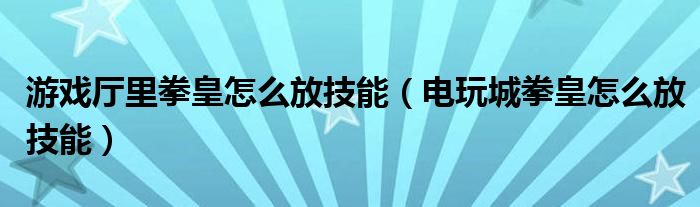 大家好,小晋来为大家解答以下问题,关于游戏厅里拳皇怎么放技能,电玩城拳皇怎么放技能很多人还不知道,今天让我们一起来看看吧!