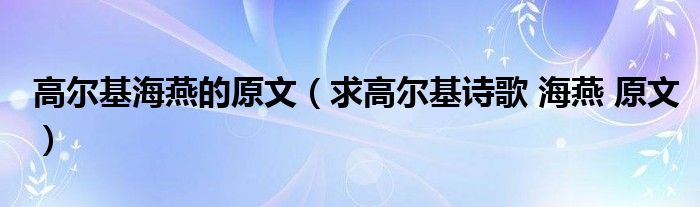 关于高尔基海燕的原文,求高尔基诗歌 海燕 原文这个很多人还不知道,今天菲菲来为大家解答以上的问题,现在让我们一起来看看吧!