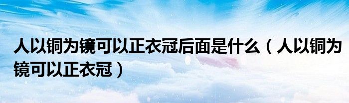 关于人以铜为镜可以正衣冠后面是什么,人以铜为镜可以正衣冠这个很多人还不知道,今天菲菲来为大家解答以上的问题,现在让我们一起来看看吧!