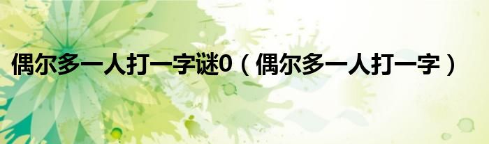 大家好,小晋来为大家解答以下问题,关于偶尔多一人打一字谜0,偶尔多一人打一字很多人还不知道,今天让我们一起来看看吧!