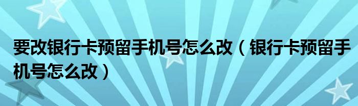 大家好,小晋来为大家解答以下问题,关于要改银行卡预留手机号怎么改,银行卡预留手机号怎么改很多人还不知道,今天让我们一起来看看吧!