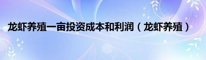 龙虾养殖一亩投资成本和利润(龙虾养殖)