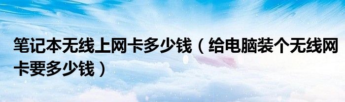 1,给电脑装个无线网卡要多少钱 :无线网卡有两种比较常见的。usb无线网卡和pci/pci-e无线网卡。两者价钱是差不多的,一般的都在30左右,pci的相对更稳定些。
