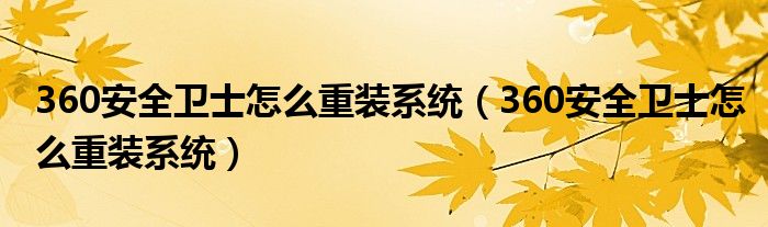大家好,今天小悦来为大家解答以上问题。360安全卫士怎么重装系统,360安全卫士怎么重装系统很多人还不知道,现在让我们一起来看看吧!