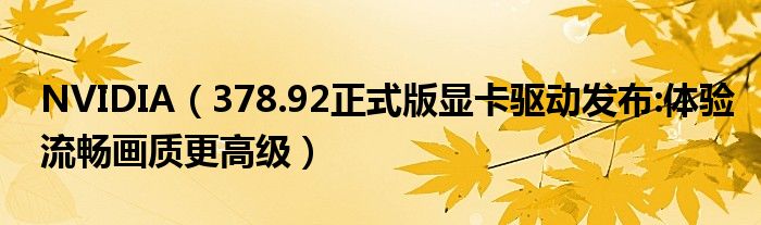 大家好,今天小悦来为大家解答以上问题。NVIDIA,378.92正式版显卡驱动发布:体验流畅画质更高级很多人还不知道,现在让我们一起来看看吧!