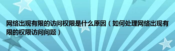 大家好,今天小悦来为大家解答以上问题。网络出现有限的访问权限是什么原因,如何处理网络出现有限的权限访问问题很多人还不知道,现在让我们一起来看看吧!