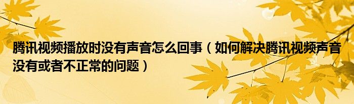 大家好,今天小悦来为大家解答以上问题。腾讯视频播放时没有声音怎么回事,如何解决腾讯视频声音没有或者不正常的问题很多人还不知道,现在让我们一起来看看吧!