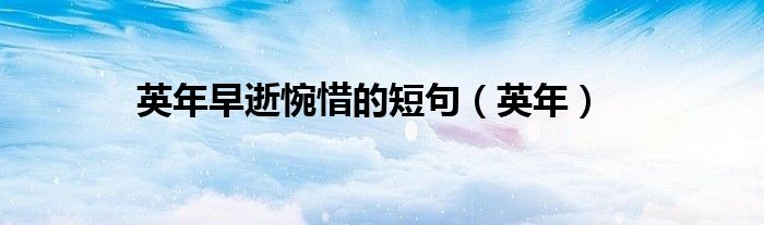 关于英年早逝惋惜的短句,英年这个很多人还不知道,今天菲菲来为大家解答以上的问题,现在让我们一起来看看吧!