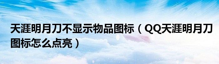 大家好,今天小悦来为大家解答以上问题。天涯明月刀不显示物品图标,QQ天涯明月刀图标怎么点亮很多人还不知道,现在让我们一起来看看吧!