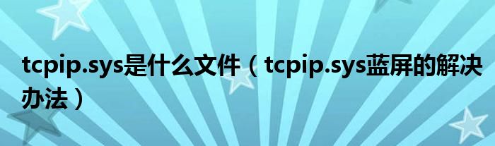 大家好,小太来为大家解答以上问题。tcpip.sys是什么文件,tcpip.sys蓝屏的解决办法很多人还不知道,现在让我们一起来看看吧!