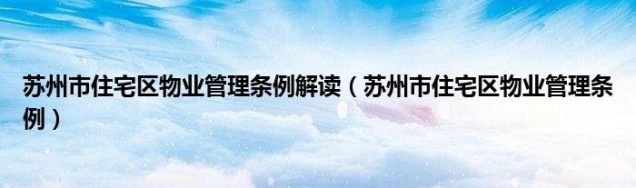 关于苏州市住宅区物业管理条例解读,苏州市住宅区物业管理条例这个很多人还不知道,今天菲菲来为大家解答以上的问题,现在让我们一起来看看吧!