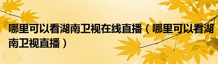 大家好,雨雨来为大家解答以上问题,哪里可以看湖南卫视在线直播,哪里可以看湖南卫视直播很多人还不知道,现在让我们一起来看看吧!