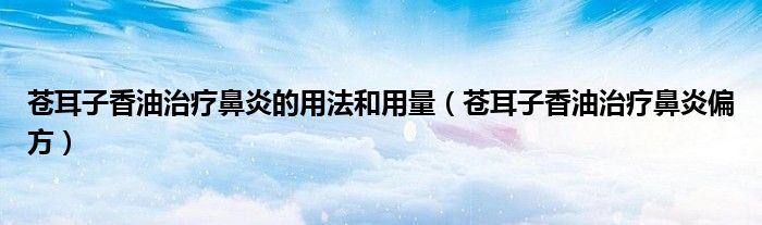 关于苍耳子香油治疗鼻炎的用法和用量,苍耳子香油治疗鼻炎偏方这个很多人还不知道,今天菲菲来为大家解答以上的问题,现在让我们一起来看看吧!