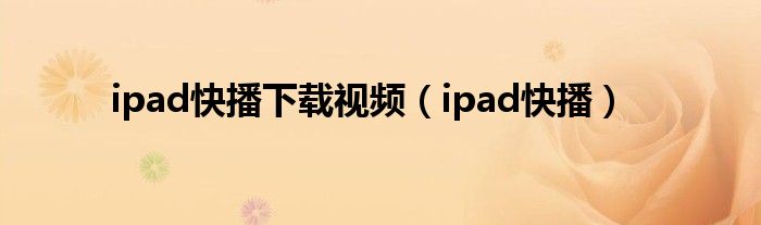 大家好,雨雨来为大家解答以上问题,ipad快播下载视频,ipad快播很多人还不知道,现在让我们一起来看看吧!