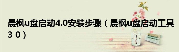 大家好,雨雨来为大家解答以上问题,晨枫u盘启动4.0安装步骤,晨枫u盘启动工具3 0很多人还不知道,现在让我们一起来看看吧!