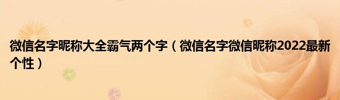 大家好,雨雨来为大家解答以上问题,微信名字昵称大全霸气两个字,微信名字微信昵称2022最新个性很多人还不知道,现在让我们一起来看看吧!