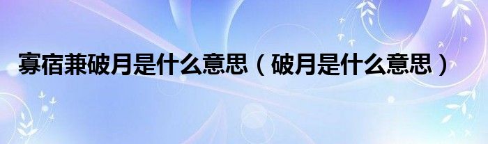 关于寡宿兼破月是什么意思,破月是什么意思这个很多人还不知道,今天菲菲来为大家解答以上的问题,现在让我们一起来看看吧!