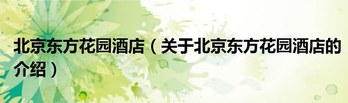 大家好,今天小乐来为大家解答以上的问题。北京东方花园酒店,关于北京东方花园酒店的介绍很多人还不知道,现在让我们一起来看看吧!