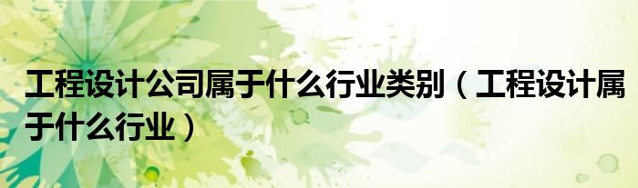 关于工程设计公司属于什么行业类别,工程设计属于什么行业这个很多人还不知道,今天菲菲来为大家解答以上的问题,现在让我们一起来看看吧!