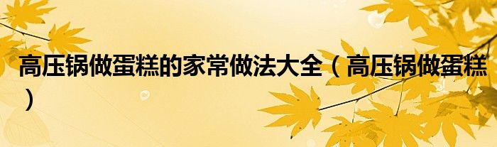 大家好,雨雨来为大家解答以上问题,高压锅做蛋糕的家常做法大全,高压锅做蛋糕很多人还不知道,现在让我们一起来看看吧!