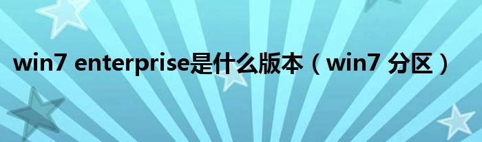 大家好,雨雨来为大家解答以上问题,win7 enterprise是什么版本,win7 分区很多人还不知道,现在让我们一起来看看吧!