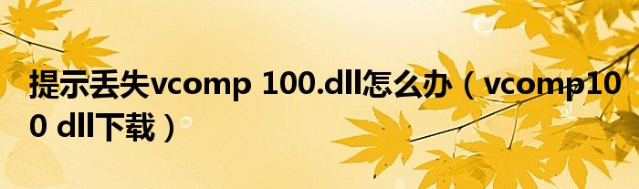 大家好,雨雨来为大家解答以上问题,提示丢失vcomp 100.dll怎么办,vcomp100 dll下载很多人还不知道,现在让我们一起来看看吧!