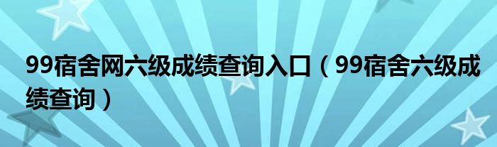 大家好,雨雨来为大家解答以上问题,99宿舍网六级成绩查询入口,99宿舍六级成绩查询很多人还不知道,现在让我们一起来看看吧!
