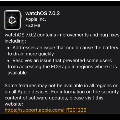 watchOS 7.0.2还解决了导致某些用户无法在可用区域访问ECG应用程序的问题。