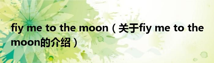 大家好,今天小乐来为大家解答以上的问题。fiy me to the moon,关于fiy me to the moon的介绍很多人还不知道,现在让我们一起来看看吧!