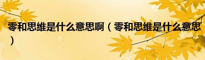 关于零和思维是什么意思啊,零和思维是什么意思这个很多人还不知道,今天菲菲来为大家解答以上的问题,现在让我们一起来看看吧!