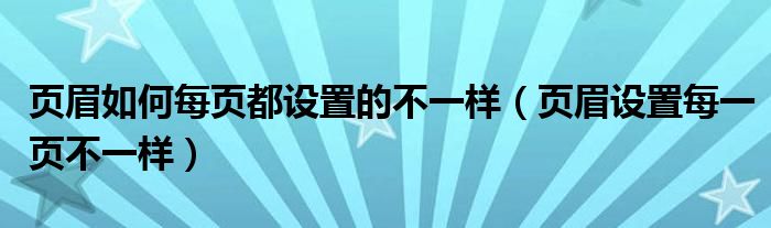 关于页眉如何每页都设置的不一样,页眉设置每一页不一样这个很多人还不知道,今天菲菲来为大家解答以上的问题,现在让我们一起来看看吧!