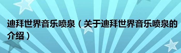 迪拜世界音乐喷泉(关于迪拜世界音乐喷泉的介绍)