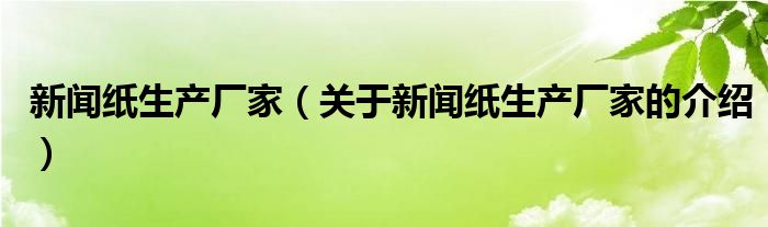 新闻纸生产厂家(关于新闻纸生产厂家的介绍)