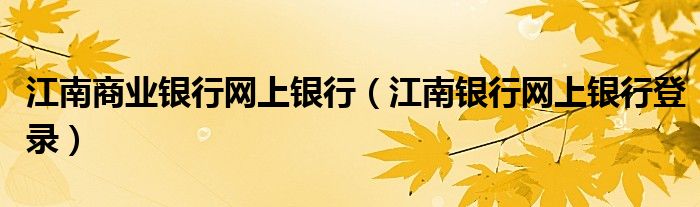 关于江南商业银行网上银行,江南银行网上银行登录这个很多人还不知道,今天菲菲来为大家解答以上的问题,现在让我们一起来看看吧!
