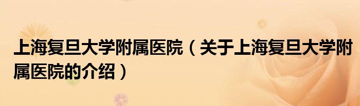 上海复旦大学附属医院(关于上海复旦大学附属医院的介绍)