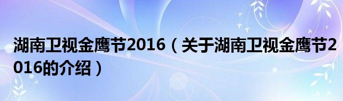 湖南卫视金鹰节2016(关于湖南卫视金鹰节2016的介绍)