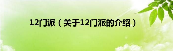 大家好,小都来为大家解答以上的问题。12门派,关于12门派的介绍很多人还不知道,现在让我们一起来看看吧!
