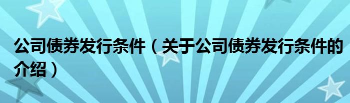 大家好,小都来为大家解答以上的问题。公司债券发行条件,关于公司债券发行条件的介绍很多人还不知道,现在让我们一起来看看吧!